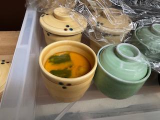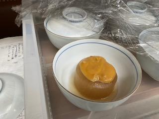 松花堂弁当に煮物と茶碗蒸し(白子入り!)お届けはできませんが、取りに来て頂いて食べたものそのまま返品していただく形です🙇‍♀️