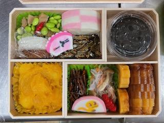写真は去年のおせち。入れ物も少し変わります。正方形の重箱風に!