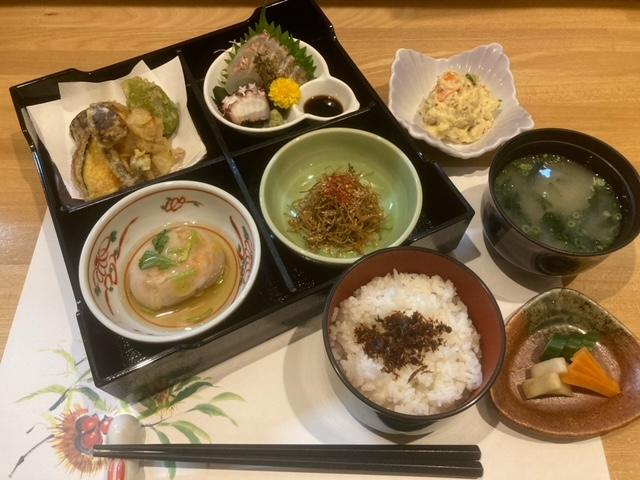 前置きが長くなりましたが💧この「オススメ料理セット」をご飯、味噌汁、お新香を付けてお値段据え置き、ランチ限定の松花堂弁当としてお出しします✨