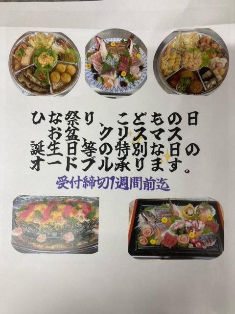 そんなイベントのお供にオードブルやフルーツ盛り、節分には太巻き、ひな祭りにはちらし寿司等々、一年通してパーティ料理ご用意します!